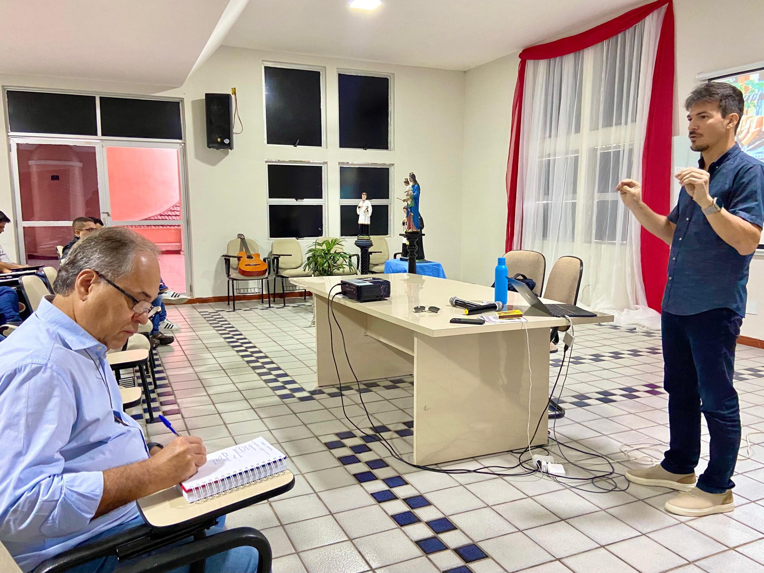 Após a Palavra de Abertura do Inspetor, Pe. Francisco Inácio, e encantando os comunicadores e comunicadoras do Nordeste Salesiano, o Dr João Paulo Gomes comandou palestra sobre Cross Channel – Aproveitando ao máximo o conteúdo e suas particularidades em publicações nos mais diversos canais.