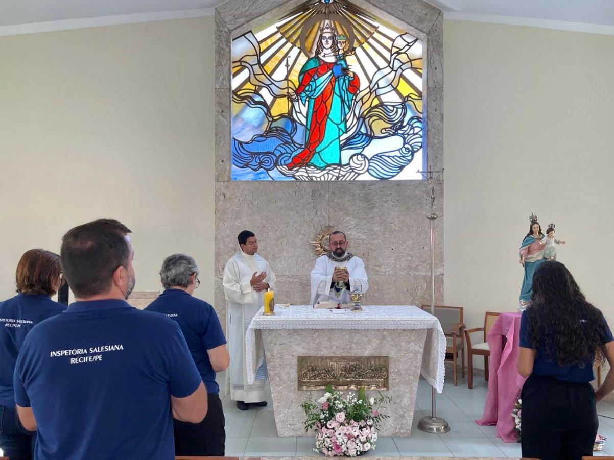 A solenidade foi celebrada pelo Pe. Eliano Queiroz (Diretor da Casa Inspetorial) e concelebrada pelo Pe. Valdemir Augusto (Coordenador Inspetorial da AJS, CIF e SAV).