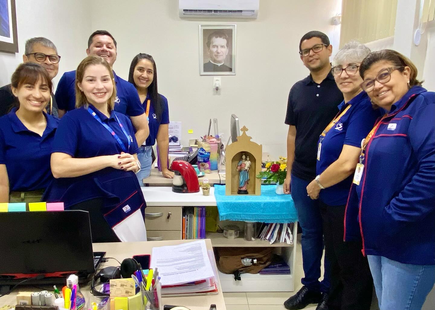 ESCOLA E CENTRO DE FORMAÇÃO PROFISSIONAL 27 de maio de 2024 Por pauloNo Centro Inspetorial, o Mês Mariano é sempre celebrado com muita alegria, espiritualidade e muita devoção. Este ano, a novidade foi, do dia 13 ao dia 23, a Visita de Nossa Senhora Auxiliadora aos setores do Centro Inspetorial. Durante a programação, os padres Valdemir Augusto e Sérgio Aquino, com apoio de Ana Inês (Secretaria), Eliane Castro (Serviço Social), Geraldino Souza (Pastoral) realizaram a programação com a condução da imagem de Nossa Senhora com orações, cantos e muita salesianidade.