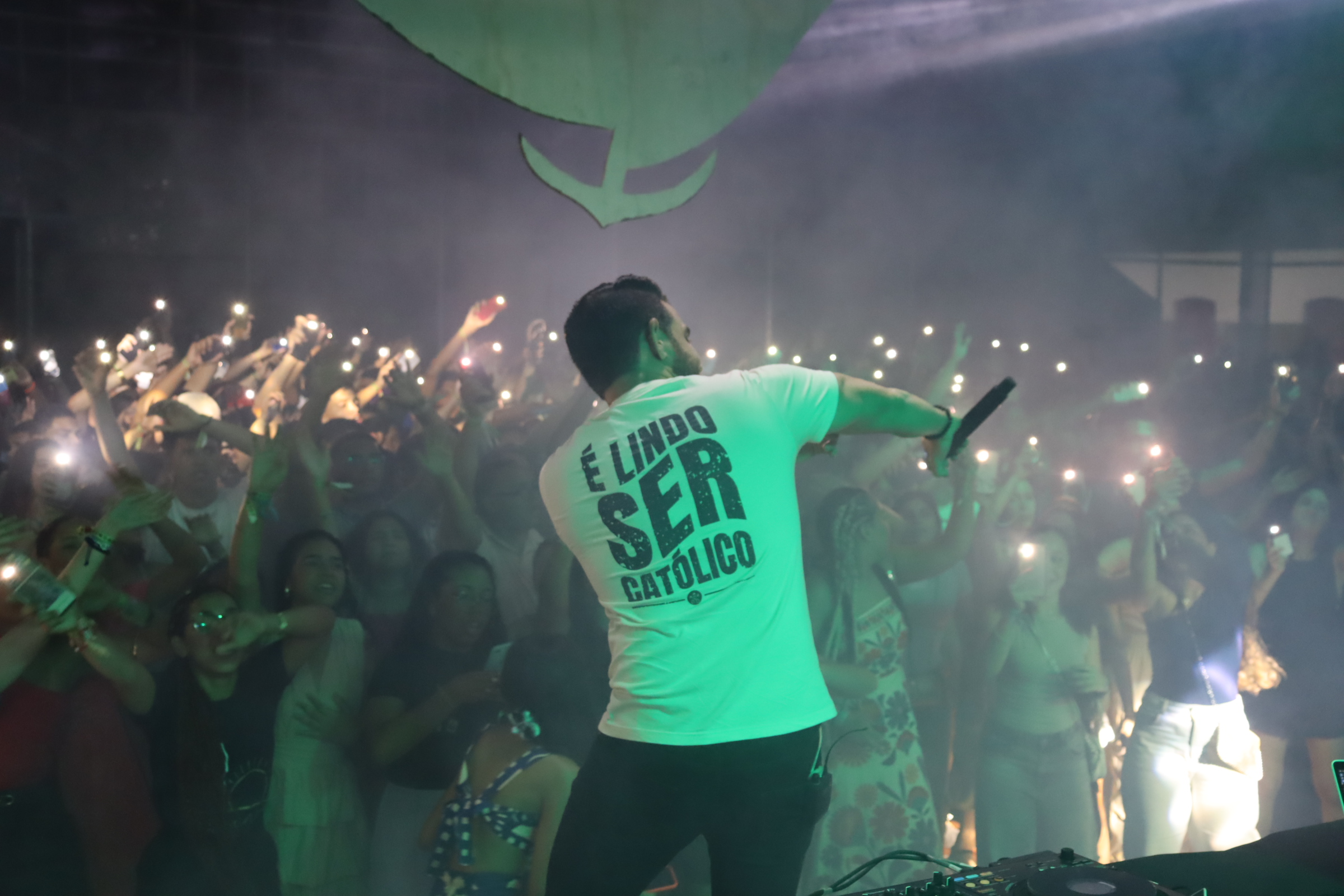 Ao anoitecer, o Ginásio Dom Bosco recebeu o Momento Mariano, conduzido com ternura e profundidade por Virgínia Oliveira, da delegação de João Pessoa. Na sequência, foi a vez do DJ Roony Moura animar a juventude em uma noite vibrante e muito esperada por todos.