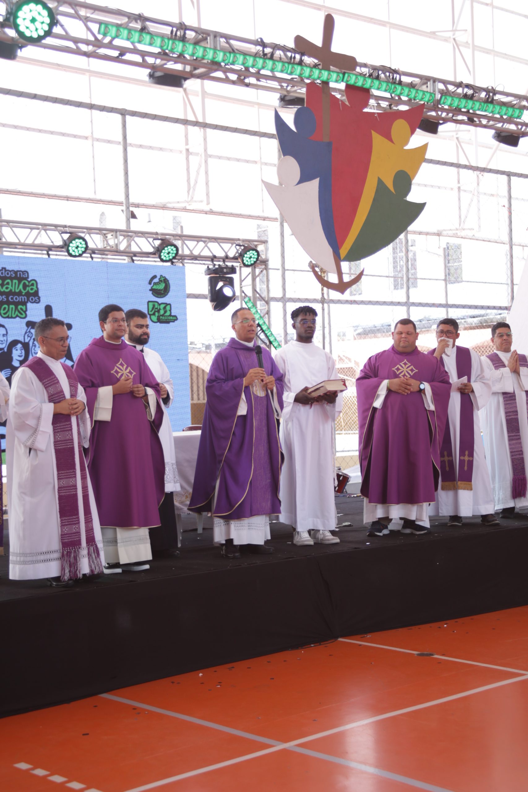 O sábado (29) amanheceu banhado pela fé. A Santa Missa, celebrada na Basílica do Sagrado Coração de Jesus, reuniu todas as delegações e foi presidida pelo Pe. Valdemir Augusto, que recebeu homenagens e muito carinho neste seu último ano como coordenador da AJS Nordeste.
