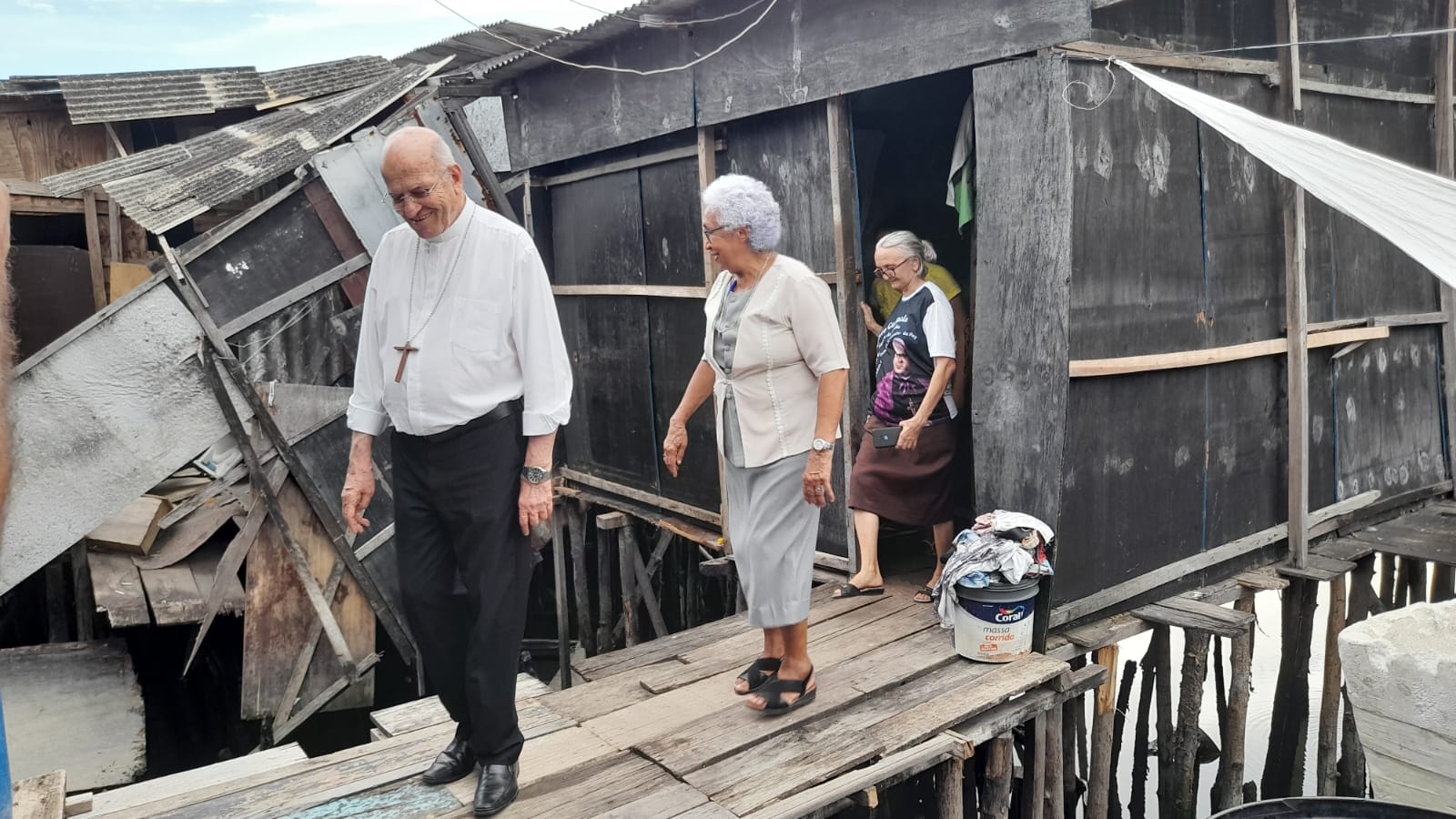 O trabalho das Medianeiras da Paz vai além dos muros do Instituto. Dom Fernando enfrentou os becos estreitos da Comunidade do Bode e visitou algumas famílias que são acompanhadas pelas irmãs. A pobreza extrema era evidente. A dificuldade de acesso aos casebres, o perigo das tábuas soltas, lixo vindo da maré. Com a visita, que revela um mundo que ninguém quer, o arcebispo espera sensibilizar as pessoas para a ajuda fraterna, a partilha.