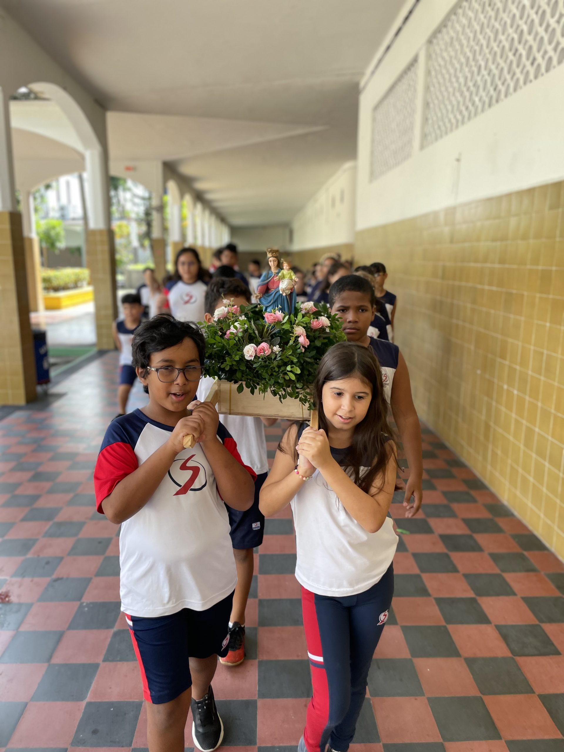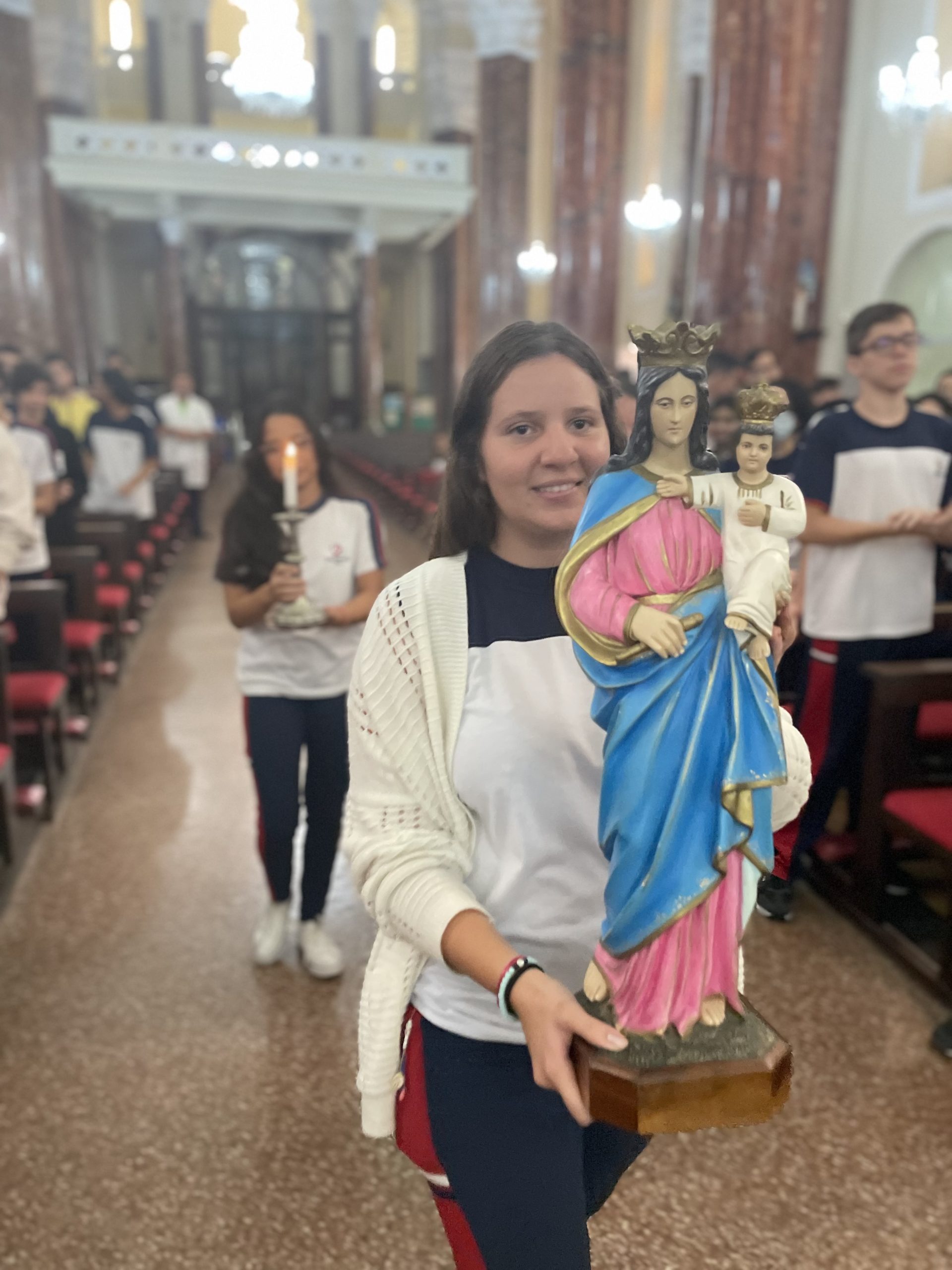 Iniciamos o mês com dois dias de festividades. Nos dias 02 e 03, pela manhã, reunimos todos os alunos na Basílica, onde foram conduzidos a refletir sobre a importância da figura de Maria, como um exemplo de virtudes como a humildade, a pureza e a generosidade.