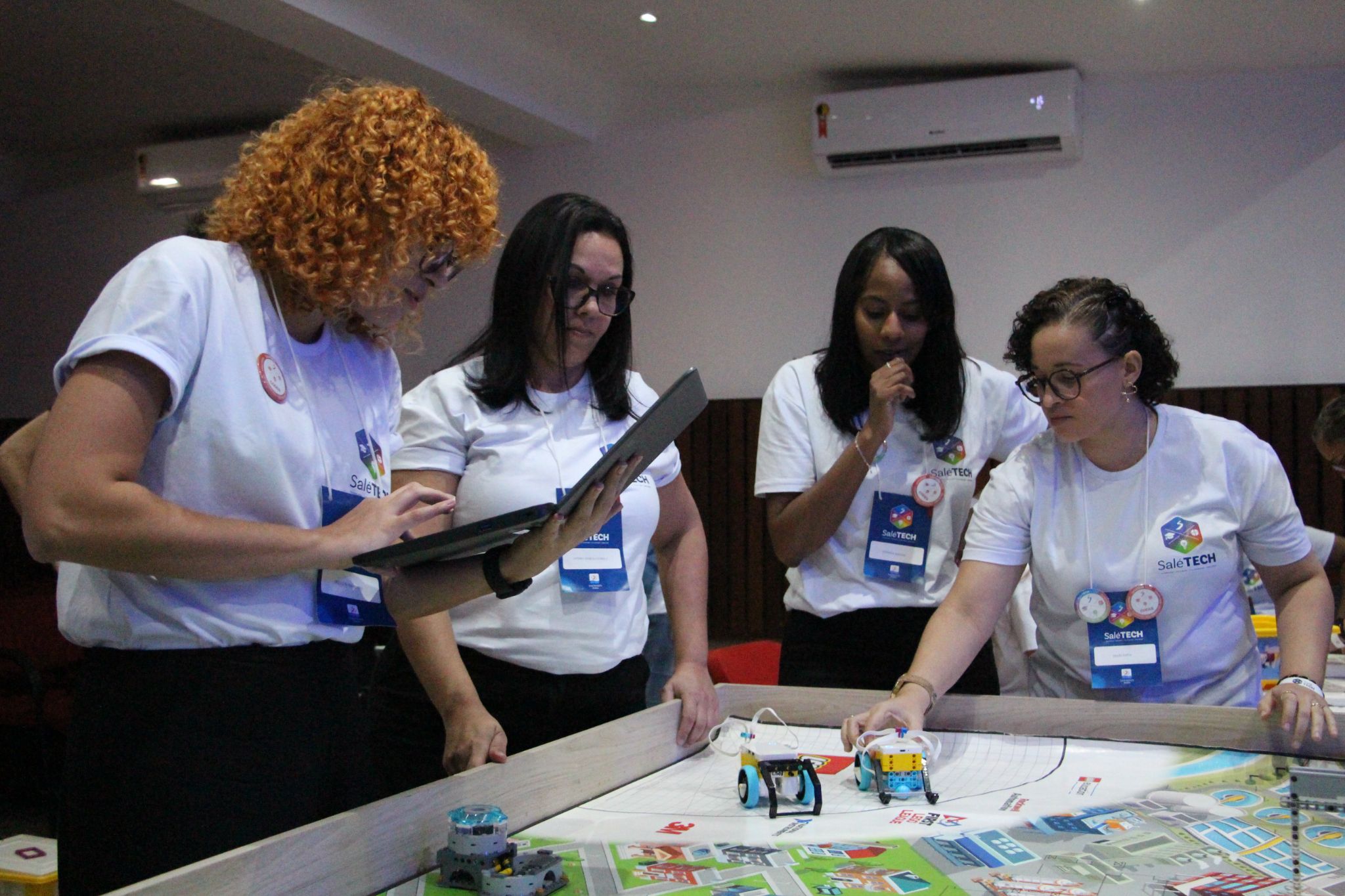 Nos dias 4 e 5 de agosto, o Salesianos Bahia promoveu o Salé Tech, o mais novo investimento da instituição para formação continuada de seus educadores. Organizado pelo Núcleo de Tecnologia Educacional (NTE) e Setor de Tecnologia da Informação (T.I.), o evento contou com palestras e workshops em parceria com a Rede Positivo Educacional. Das linguagens de programação à criatividade, a proposta dos departamentos é preparar mentes focadas em inovação.