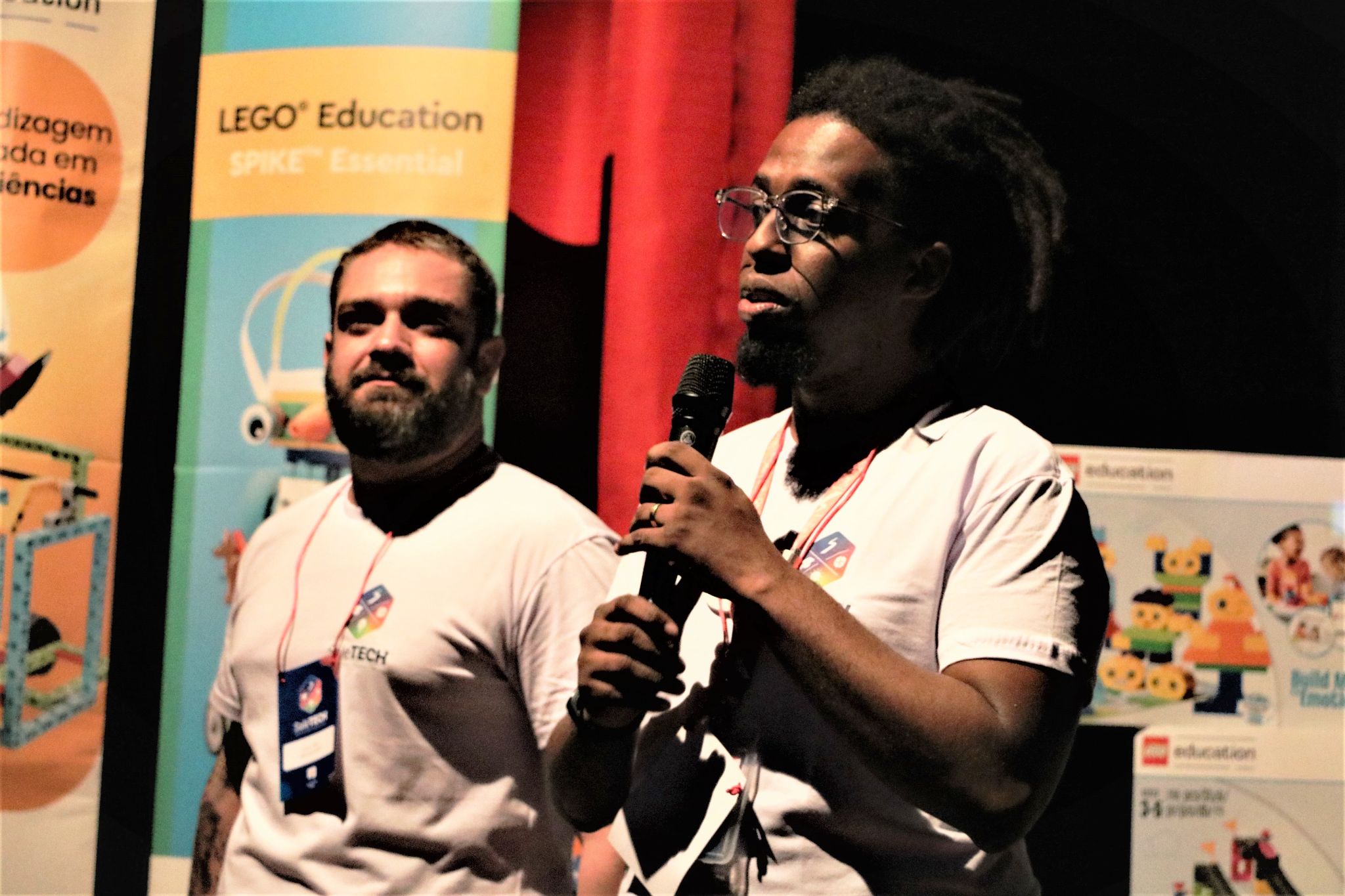 Na programação do primeiro dia, educadores do administrativo e pedagógico foram introduzidos a metodologia desenvolvida pela Lego Education, que aborda o modelo dos 5 Es (termo inglês para as etapas de ensino: Envolver, Explorar, Explicar, Elaborar e Avaliar). Distribuídos em 4 equipes, cada participante pode experimentar um pouco das dinâmicas propostas pelo modelo de ensino. As atividades desafiavam os grupos a engajarem em um trabalho colaborativo munido de estratégias resolutivas.