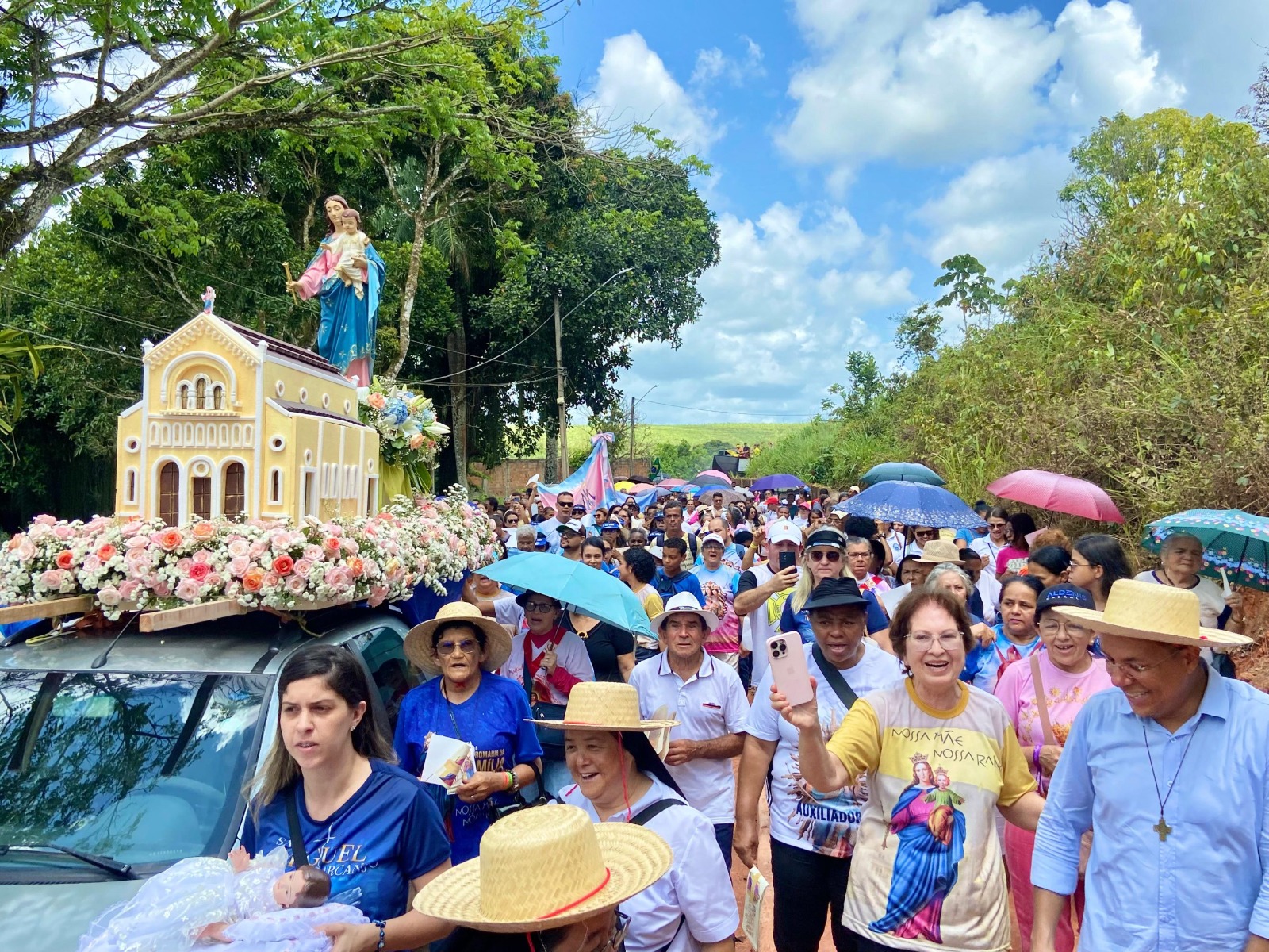A programação começou com a concentração na Igreja de São Sebastião, onde fiéis rezavam terço, encontravam suas caravanas e aguardavam, com suas bandeirinhas, a saída do andor – especialmente preparado com flores e a réplica da Basílica de Nossa Senhora Auxiliadora.