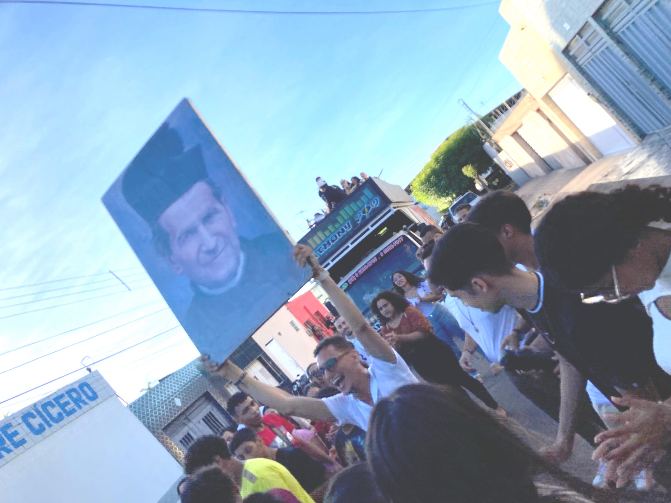 Era por volta das 16h quando os moradores do bairro Salesianos se puseram em suas calçadas para ver centenas de jovens pulando, cantando e rezando à Virgem Auxiliadora.