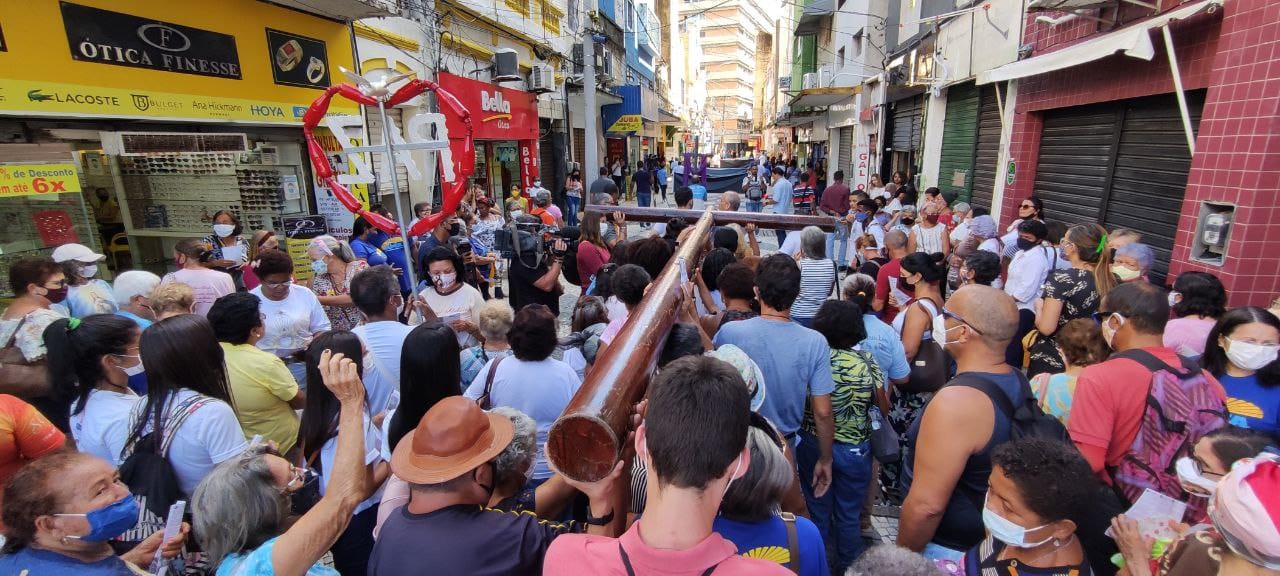 Durante o percurso, haverá 14 estações em frente às igrejas ou lojas, com momentos de oração, leitura bíblica e depoimentos sobre a Paixão de Cristo e a conexão com o sofrimento de uma grande parcela da população. A Cruz, com peso de 100 kg, será conduzida nos ombros de diversos grupos, como desempregados, viúvas, estudantes, pessoas atingidas pela violência urbana e moradores de rua.