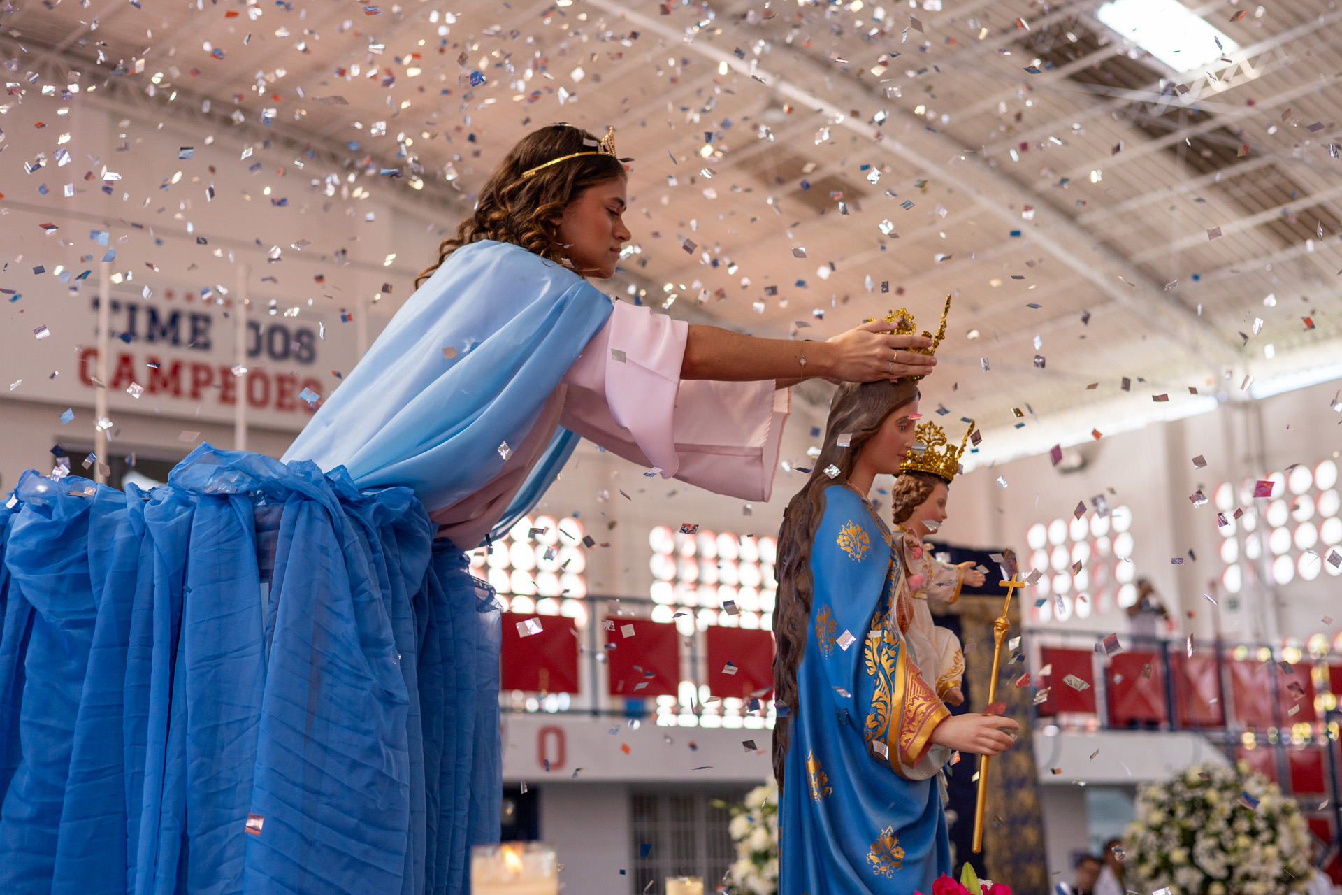 ESCOLA E CENTRO DE FORMAÇÃO PROFISSIONAL 26 de maio de 2025 Por paulo(A aluna da 3ª Série do Ensino Médio, Bianca Alves, coroa Nossa Senhora Auxiliadora)