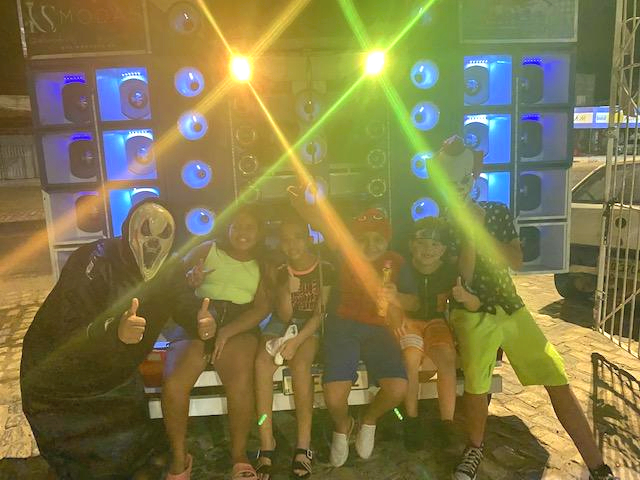Na sequência, nosso Bloquinho saiu pelas ruas, com a garotada acompanhada de um “paredão de som” e um cordão de isolamento; um momento de muita alegria, animação, diversão.