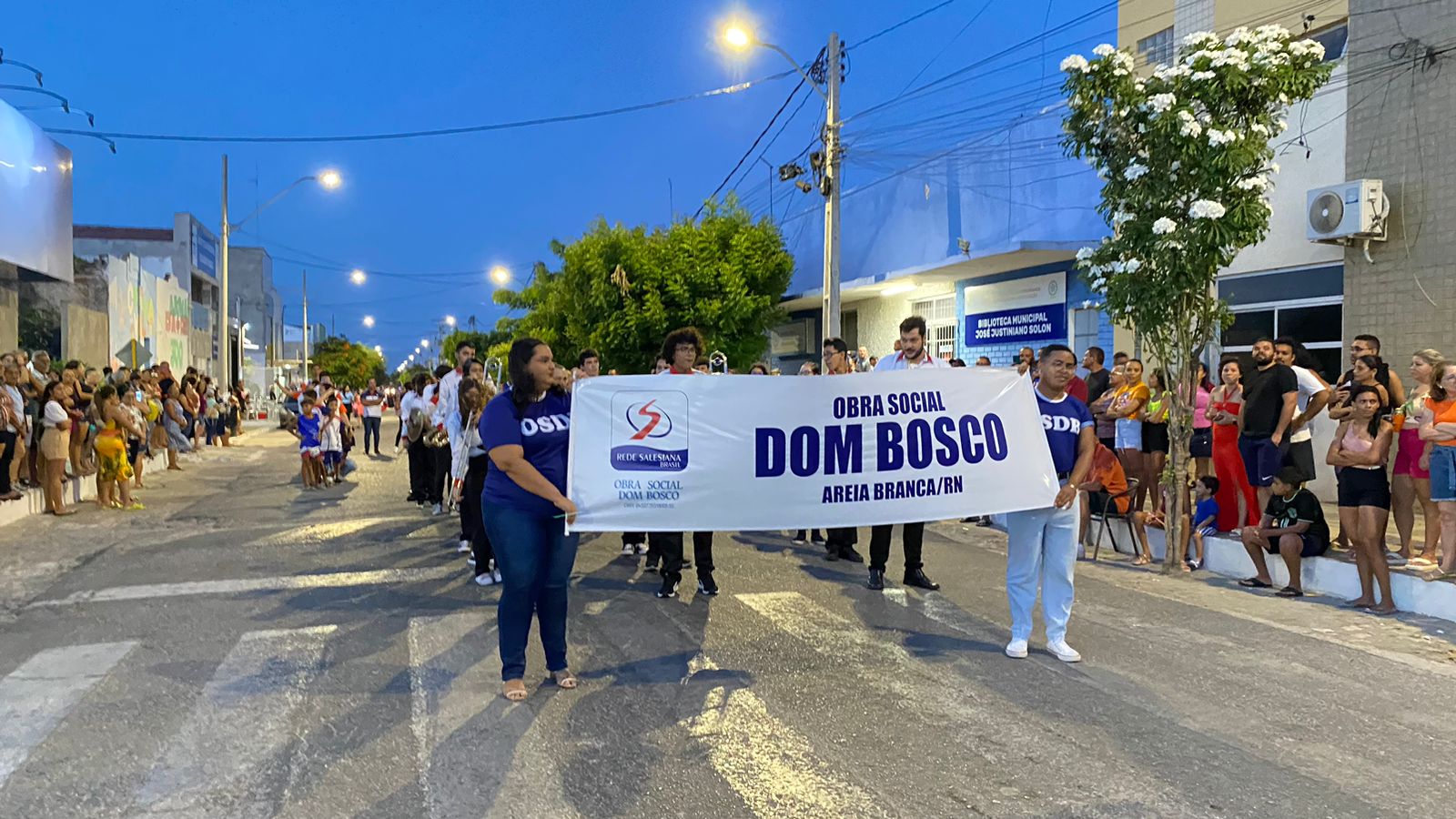 OBRAS E SERVIÇOS SOCIAIS 23 de outubro de 2023 Por pauloA cidade de Areia Branca completou 96 anos de emancipação e elevação a condição de município neste dia 22 de outubro. As comemorações foram feitas com um bonito desfile de escolas e instituições, cujo evento contou com uma boa participação da Obra Social Dom Bosco.