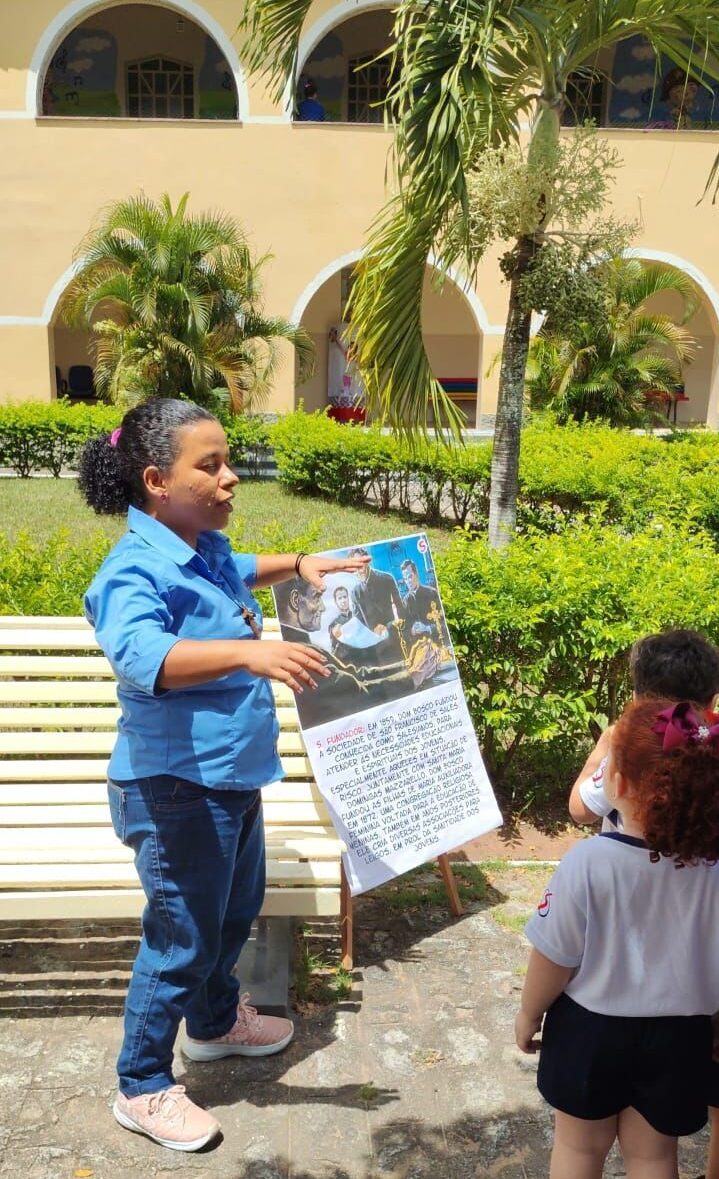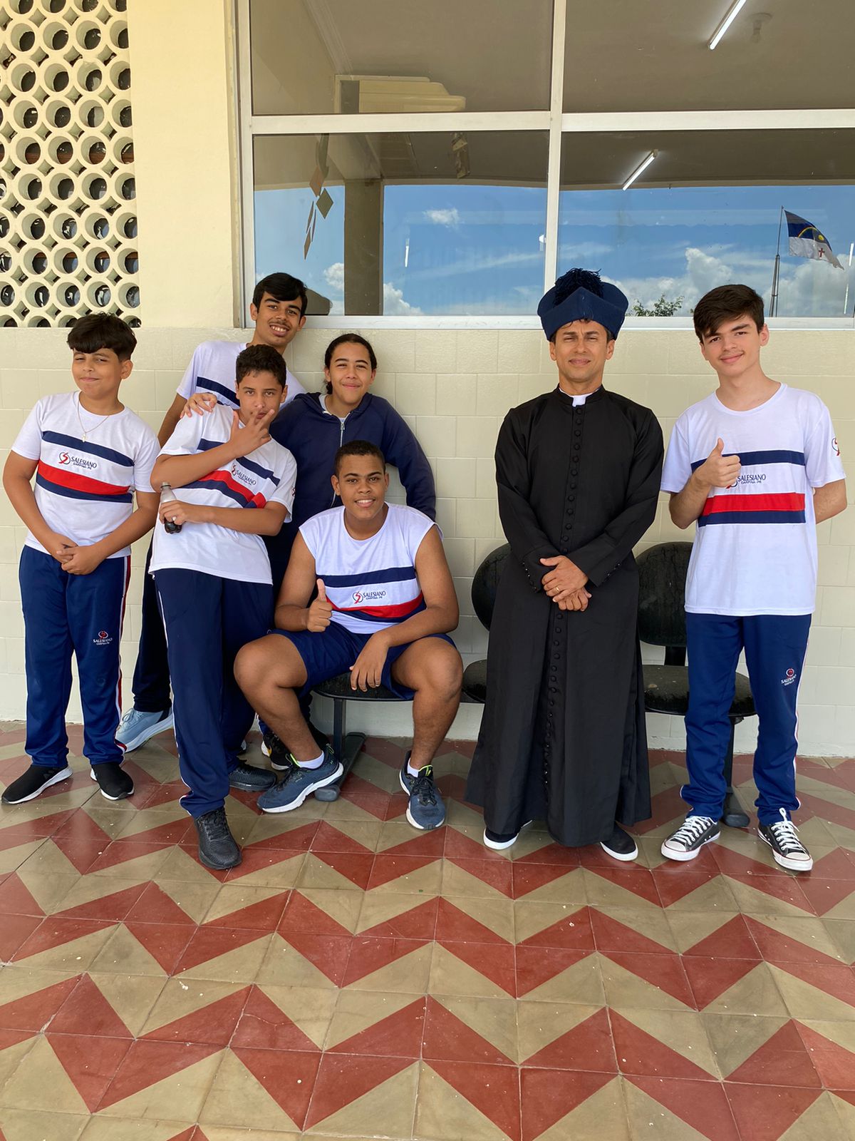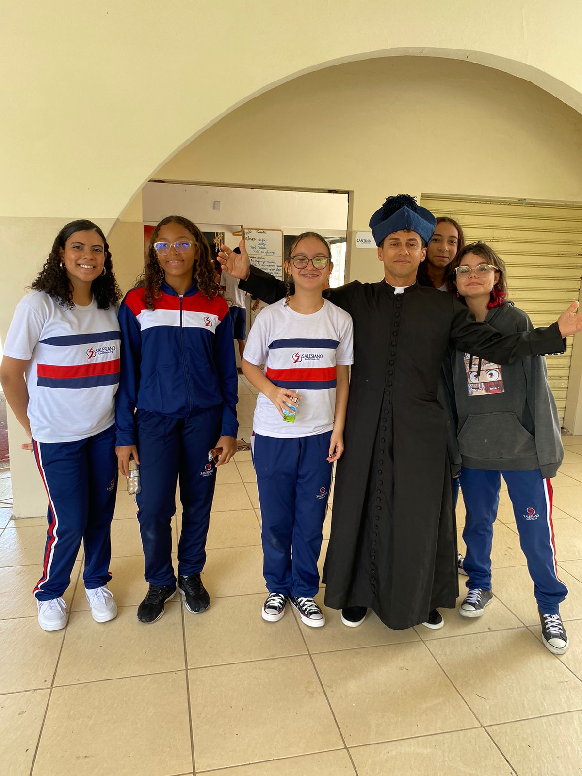Na ocasião, um colaborador foi convidado e aceitou interpretar Dom Bosco no momento do intervalo. Ele passeou por todos os setores, cumprimentando alunos e outros colaboradores, fazendo todos sentirem um pouco do carisma e de alguma forma, sentirem a presença do nosso mestre. “Foi um intervalo repleto de alegria aos nossos alunos e a certeza de que Dom Bosco se faz presente em nós”, destacou Amanda
