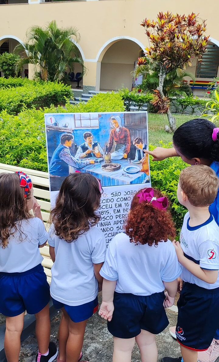 ESCOLA E CENTRO DE FORMAÇÃO PROFISSIONAL 2 de fevereiro de 2024 Por Renata CruzPara vivenciar a celebração litúrgica de São João Bosco, a pastoral do Colégio Salesiano Carpina, situado na Zona da Mata Norte de Pernambuco, realizou uma exposição voltada aos alunos e colaboradores. A ação, mediada pelo Pe. Antônio Neto, foi dividida em 10 fatos sobre a vida e a jornada na fé, percorrida pelo nosso mentor, desde a infância, citando o sonho de Dom Bosco aos 9 anos, até a formação de toda a rede salesiana.
