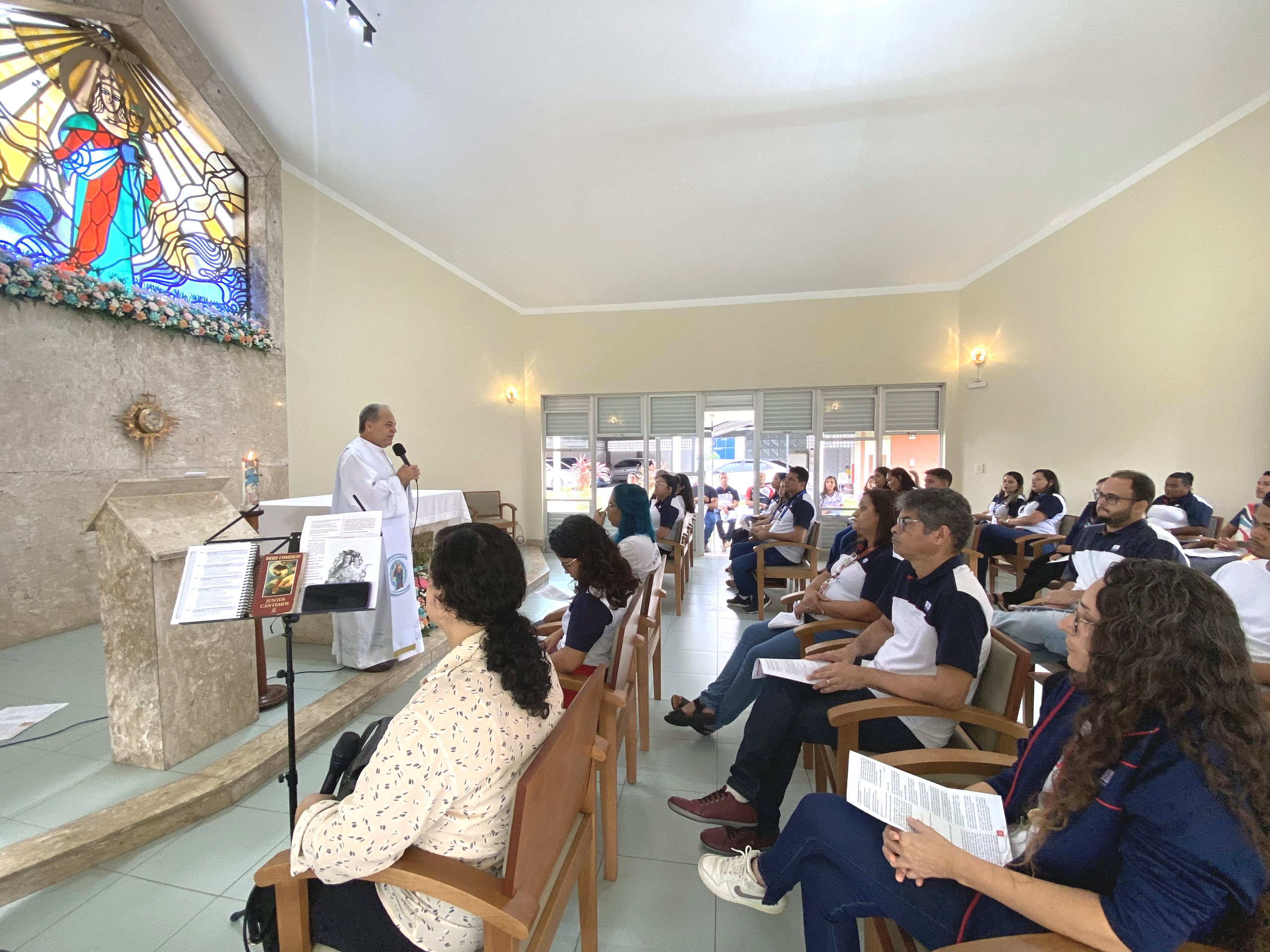 Cada detalhe, incluindo leituras, cantos pelo casal Joselito e Lilian, belíssimas flores na capela e lembrancinhas, carinhosamente preparados com muito entusiamo para a Mãe Auxiliadora.