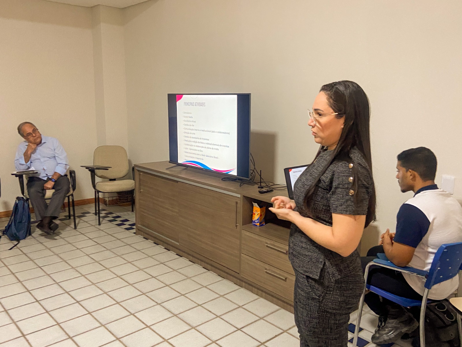 No primeiro dia, a programação começou com a Acolhida realizada pelo Pe. João Carlos, delegado para a comunicação e vice-inspetor; seguida pelo painel protagonizado por Amanda Couto, assistente social da Inspetoria, que abordou o tema “Despertar para o trabalho em rede”. Na oportunidade, Amanda destacou a importância da comunicação na divulgação das atividades e ações das Obras Sociais por parte das Escolas e como ambas podem crescer em conjunto.