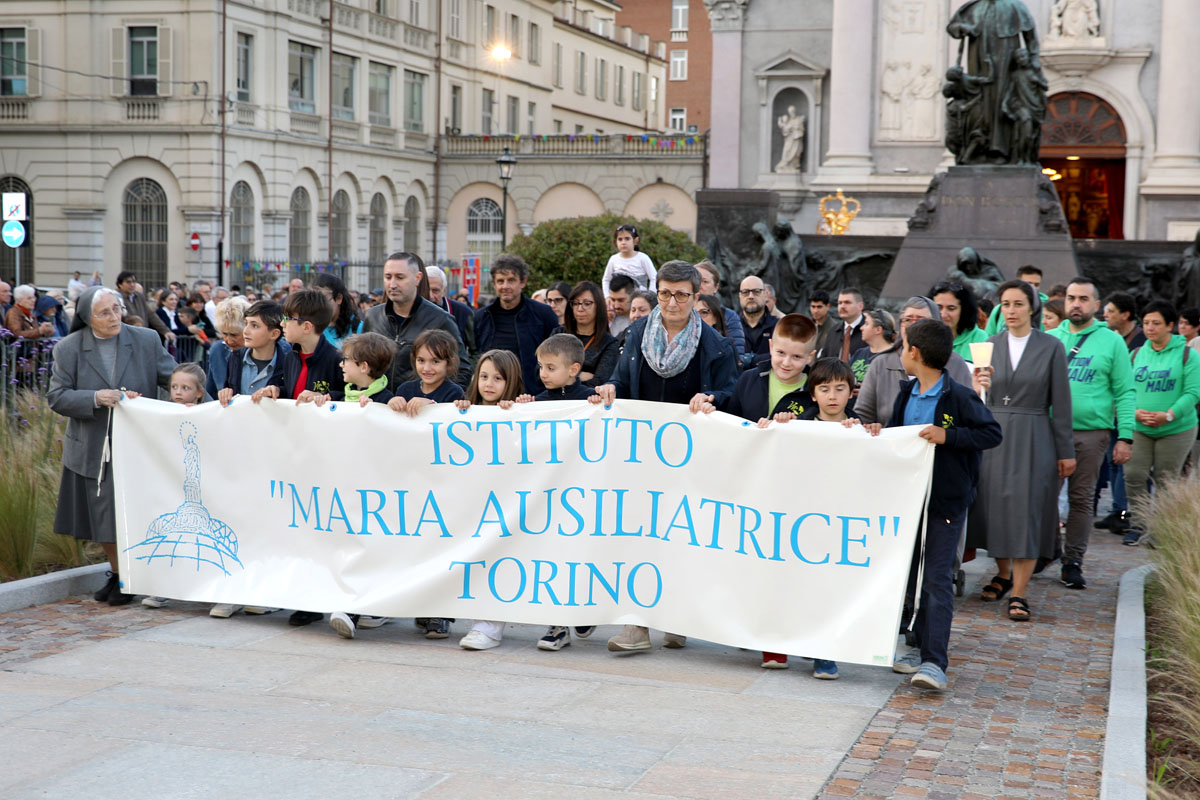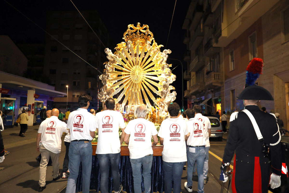 Um dia tão rico de festividades só poderia terminar de forma festiva e solene, com a tradicional Procissão com a estátua de Maria Auxiliadora pelas ruas de Valdocco. Uma celebração que não era tão lotada e alegre há pelo menos cinco anos – devido às condições climáticas adversas e às restrições impostas pelo Covid-19 nos anos anteriores – e que terminou após cantos e orações com o retorno à Paça – agora reformada – na frente da Basílica de Maria Auxiliadora.