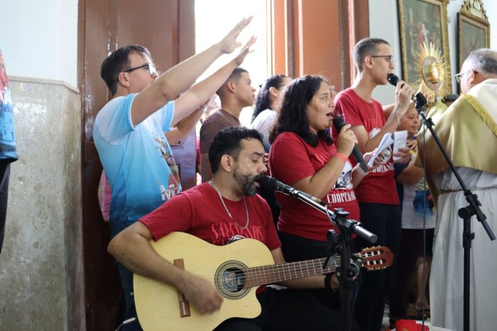 20 de outubro de 2025 Por pauloCom a presença do Conselheiro Regional Pe. Gabriel Romero, o Santuário Basílica de Nossa Senhora Auxiliadora em Jaboatão, PE, recebeu, no último 19 de outubro, a 82ª Romaria da Família Salesiana, com numerosa presença de fiéis vindos de todo o território da Inspetoria. Mais uma vez, o evento reuniu membros de todos os grupos da Família Salesiana presentes na região.