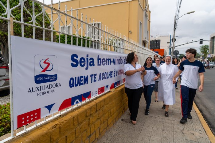 25 de fevereiro de 2026 Por pauloNa manhã do dia 24, na residência das irmãs, a Madre recebeu a visita dos alunos do terceiro ano do Colégio Maria Auxiliadora de Petrolina, que a acolheram com entusiasmo ao som do canto “Põe tua mão, minha Rainha”. O gesto expressou o carinho e a espiritualidade mariana que marcam a identidade da comunidade educativa.