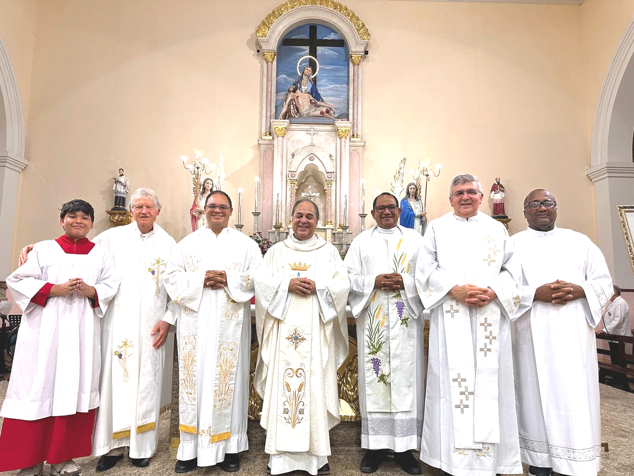 14 de fevereiro de 2025 Por pauloNesta terça-feira, 11 de fevereiro, o vice-postulador da causa de beatificação de Dom Antônio de Almeida Lustosa, padre João Carlos Ribeiro, presidiu a missa de ação de graças pelo centenário de ordenação episcopal do venerável arcebispo emérito de Fortaleza. A cerimônia foi realizada na matriz de Nossa Senhora da Piedade, em Fortaleza.
