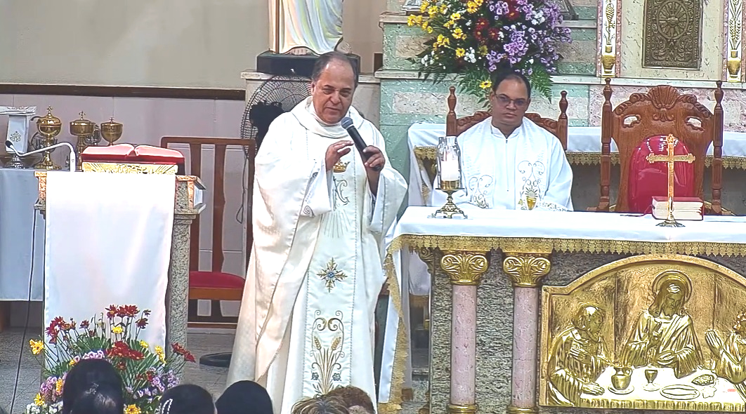 Durante a homilia, padre João Carlos destacou três aspectos centrais da vida do bispo: seu profundo amor a Nossa Senhora, seu compromisso com os pobres e sua dedicação à Igreja.