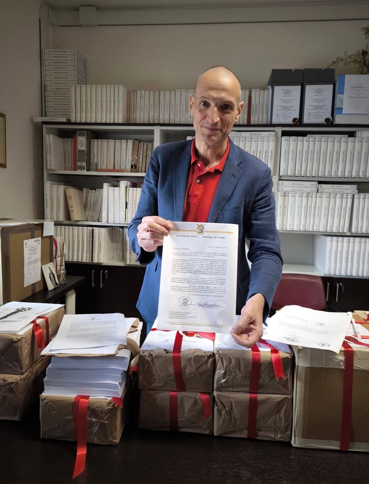 4 de novembro de 2025 Por pauloNa última sexta-feira, 31 de outubro, a Diocese de Crato informou a Abertura Oficial do inquérito sobre a vida, as virtudes e a fama de santidade do Servo de Deus Padre Cícero Romão Batista no Dicastério para as Causas dos Santos. Com isso, teve início oficialmente, a fase Romana desta primeira etapa do Processo de Beatificação do Padre Cícero. Nesta fase, serão analisados todos os documentos, depoimentos e materiais colhidos na Fase Diocesana do Processo. Paolo Vilotta foi o responsável pela entrega da documentação ao Dicastério da Causa dos Santos para validação jurídica, conferindo se todos os passos foram realizados de forma correta.