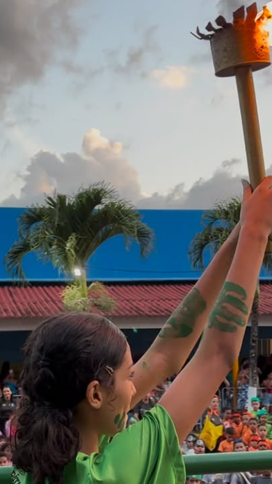 Com o tema “No pátio da esperança: cultivando sonhos e colhendo vitórias”, a abertura reuniu alunos, educadores e famílias em um momento de celebração. A programação começou às 13h, com a chegada dos estudantes e a entrega das pulseiras de identificação. Logo depois, a animação tomou conta do pátio com a animação do DJ Paulo Thiago, que embalou a concentração das torcidas e o aquecimento das equipes.