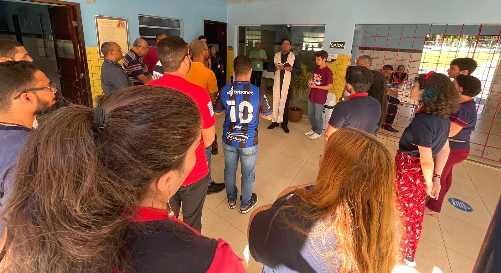 Uma das partes mais marcantes da visita foi a bênção solene realizada no colégio, onde o Pe. Leandro abençoou os novos ambientes da escola e as salas de aula.