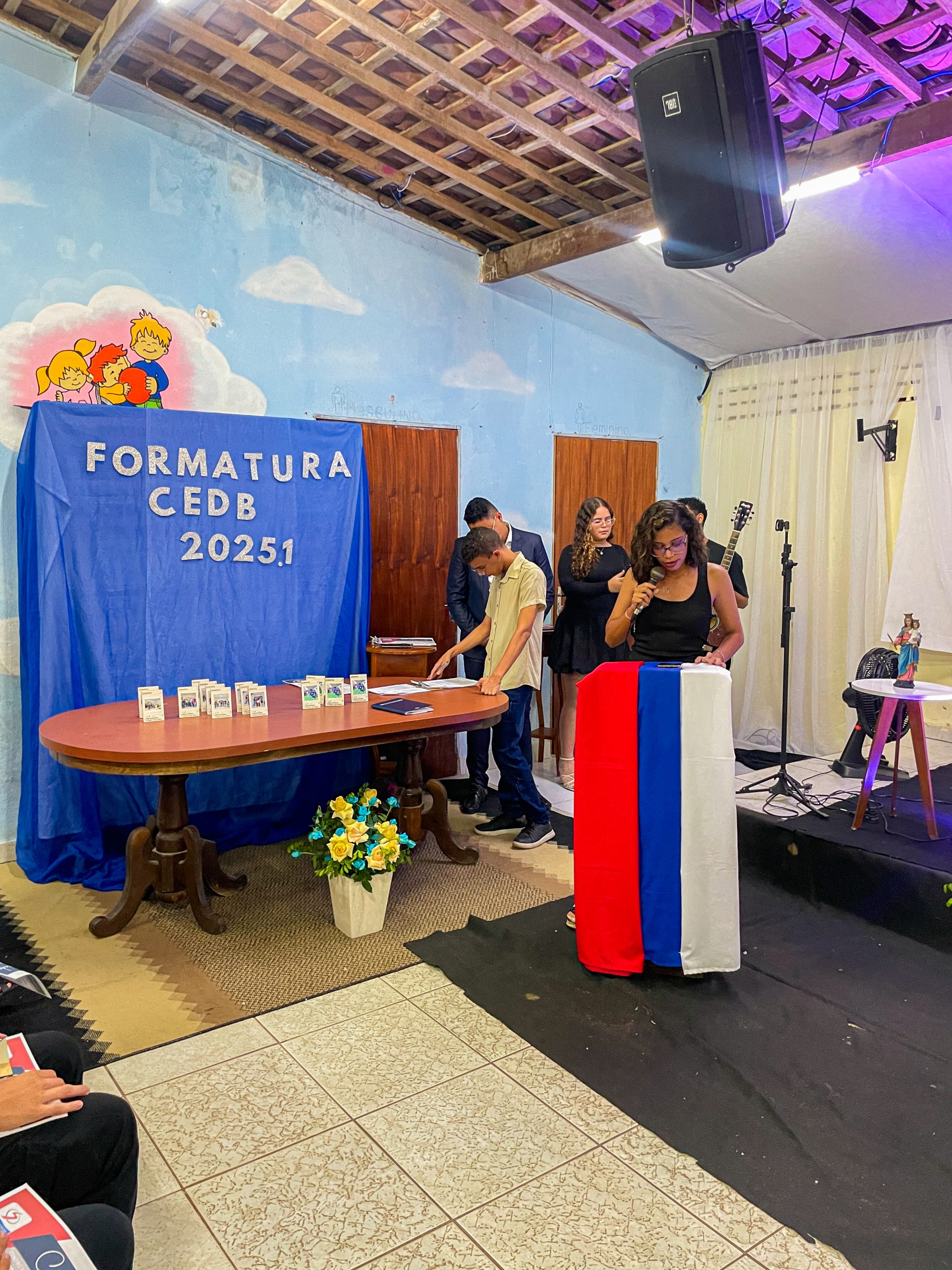 ESCOLA E CENTRO DE FORMAÇÃO PROFISSIONAL 17 de junho de 2025 Por Renata CruzNa noite do dia 10 de junho, o Centro Educacional Dom Bosco (CEDB) realizou, no Salão Paroquial da Igreja Nossa Senhora das Dores, a cerimônia de formatura das turmas 2025.1. O evento marcou a conclusão de mais uma etapa importante na vida de 65 educandos, dos projetos “Largada para o futuro” e os Cursos Gratuitos de Oratória, Assistente Administrativo, Excel e Macramê Que encerraram seus cursos com celebração, emoção e sentimento de conquista.