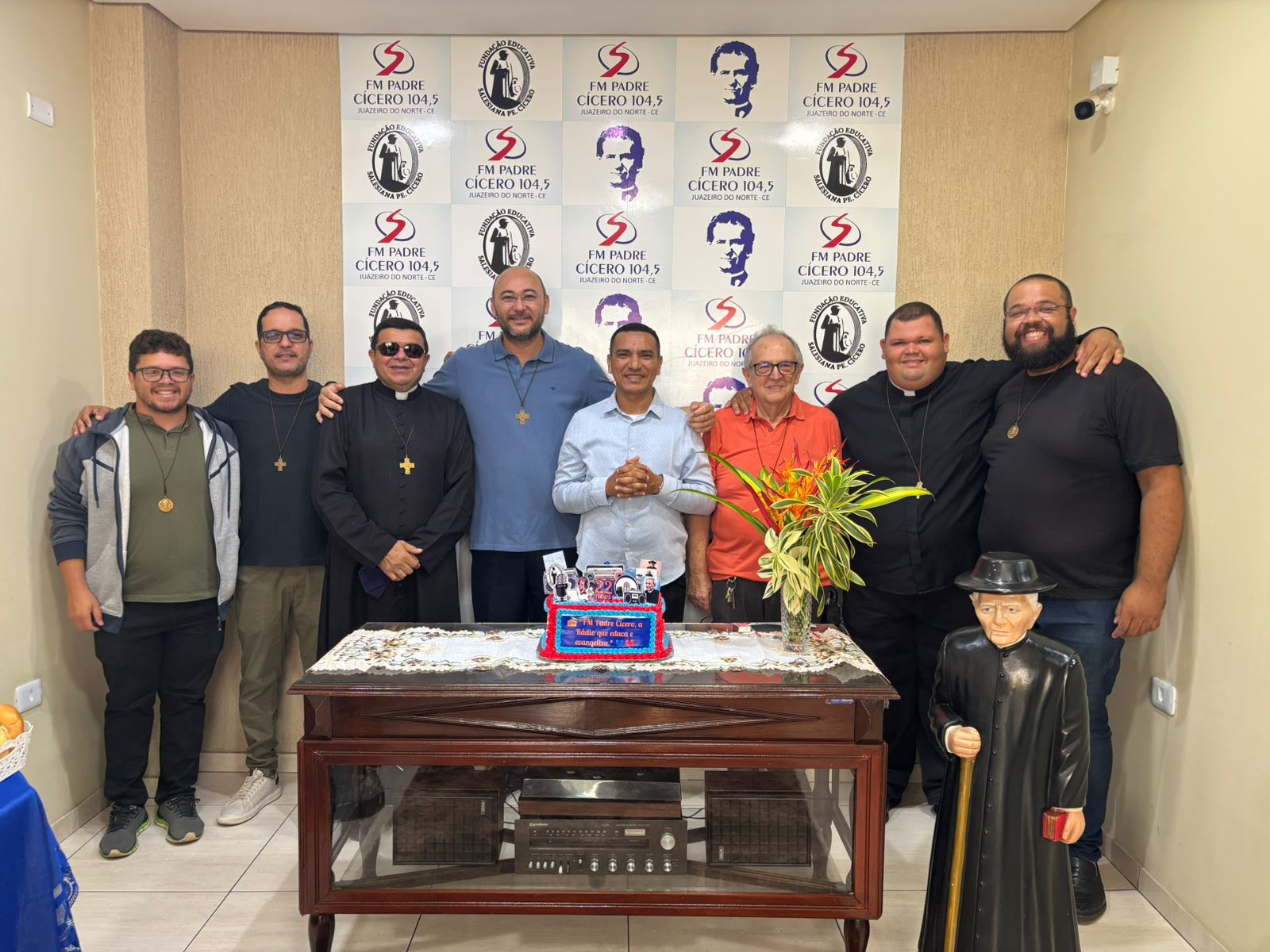 O diretor geral da rádio, o Salesiano Padre Fábio Luciano, reforçou a presença das frentes salesianas de Juazeiro, em sinal de unidade. “É uma grande alegria, estou com o coração pulsando de felicidade de estarmos juntos, reunidos. Aqui temos representações de todas as frentes da Obra Salesiana de Juazeiro do Norte. A Paróquia Sagrado Coração de Jesus, a Casa Museu Padre Cícero, Colégio Salesiano São João Bosco e o Horto do Padre Cícero”.