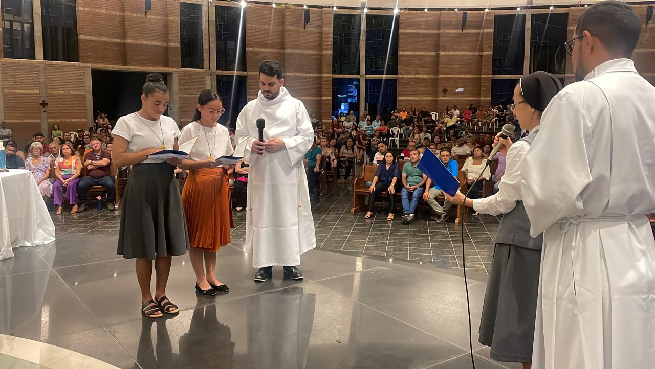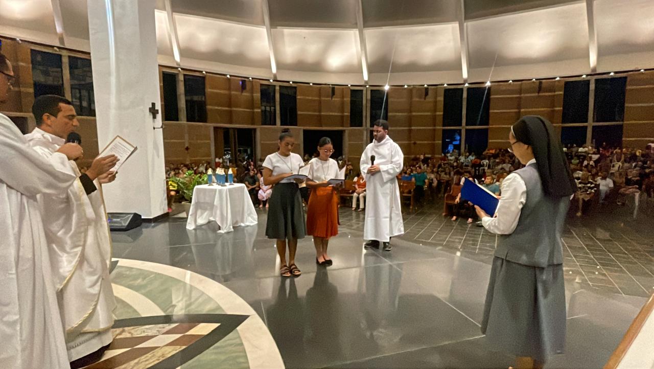 29 de abril de 2024 Por pauloAconteceu, na noite deste dia 28 de abril, V Domingo da Páscoa, em celebração eucarística na Igreja Bom Jesus do Horto, presidida por Padre Francisco Ataíde, sdb, Administrador do Horto Padre Cícero, com rito de ingresso na etapa do Aspirantado das Irmãs da Caridade de Jesus, a acolhida das aspirantes Eliane de Sales Oliveira (Exu, PE) e Maria Luiza Mendes da Silva (Jupi, PE).