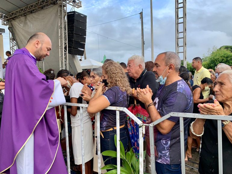 Saudando os demais padres que concelebravam a Santa Missa, Dom Magnus, em sua homilia, alertou os romeiros(as) sobre “o propósito de vida de conversão, de mudança, ouvir aquilo que a palavra de Deus nos pede. Retornando para casa, encontrar o grande milagre que é o milagre da acolhida, do encontro, de tantas vezes silenciar diante das incompreensões”, exclamou o Pastor Diocesano.