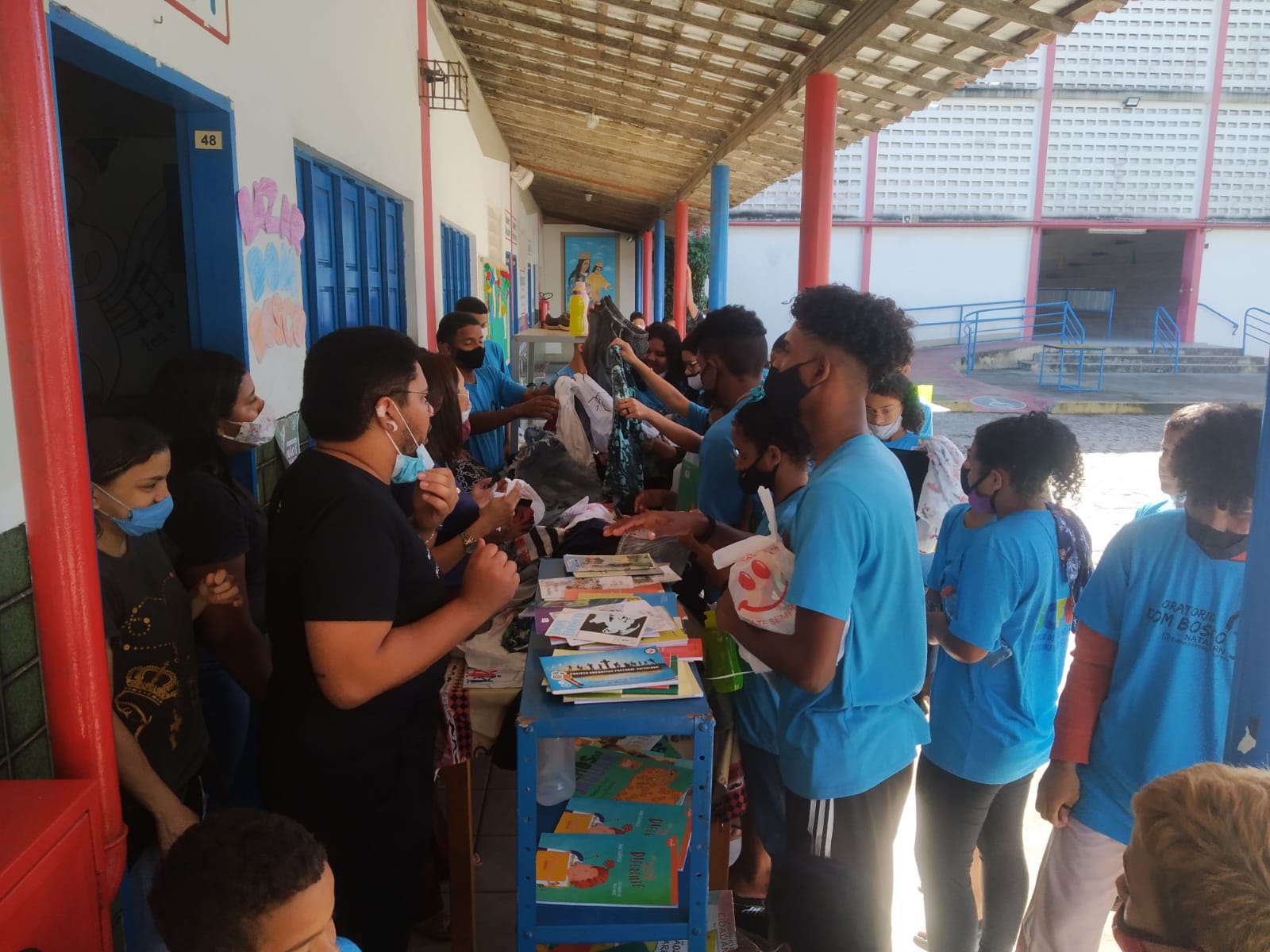 ESCOLA E CENTRO DE FORMAÇÃO PROFISSIONAL 18 de julho de 2022 Por pauloO Centro Educacional Dom Bosco realizou neste último Domingo,18 de julho, um Bazar Solidário com produtos frutos de doações adquiridas pelos Colégios Salesianos do RN e pessoas físicas diversas. Como atividade da equipe Pedagógica, os participantes do Oratório Diário receberam moedas fictícias, sem valor monetário, mas com a intenção de trabalhar a matemática financeira e a consciência de compra a partir das prioridades de cada um, oportunizando escolher dos produtos que atendesse a alguma necessidade, seja de vestuários, calçados, brinquedos e livros; sem nenhum custo, tudo de graça.