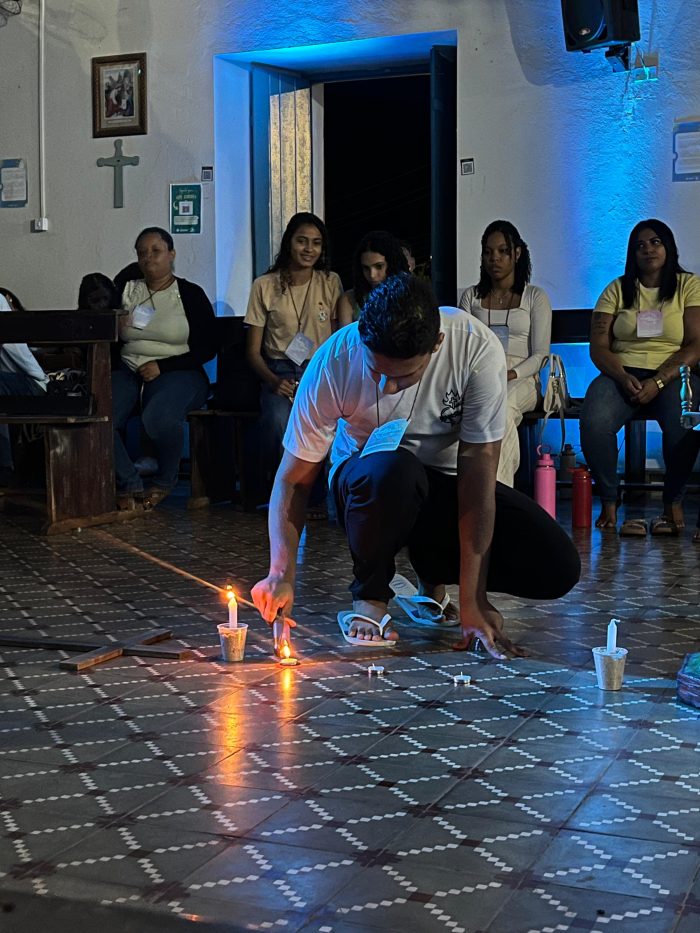 Ao longo da noite, a Vigília Jovem foi estruturada em diferentes momentos de espiritualidade, reflexão e expressão juvenil.