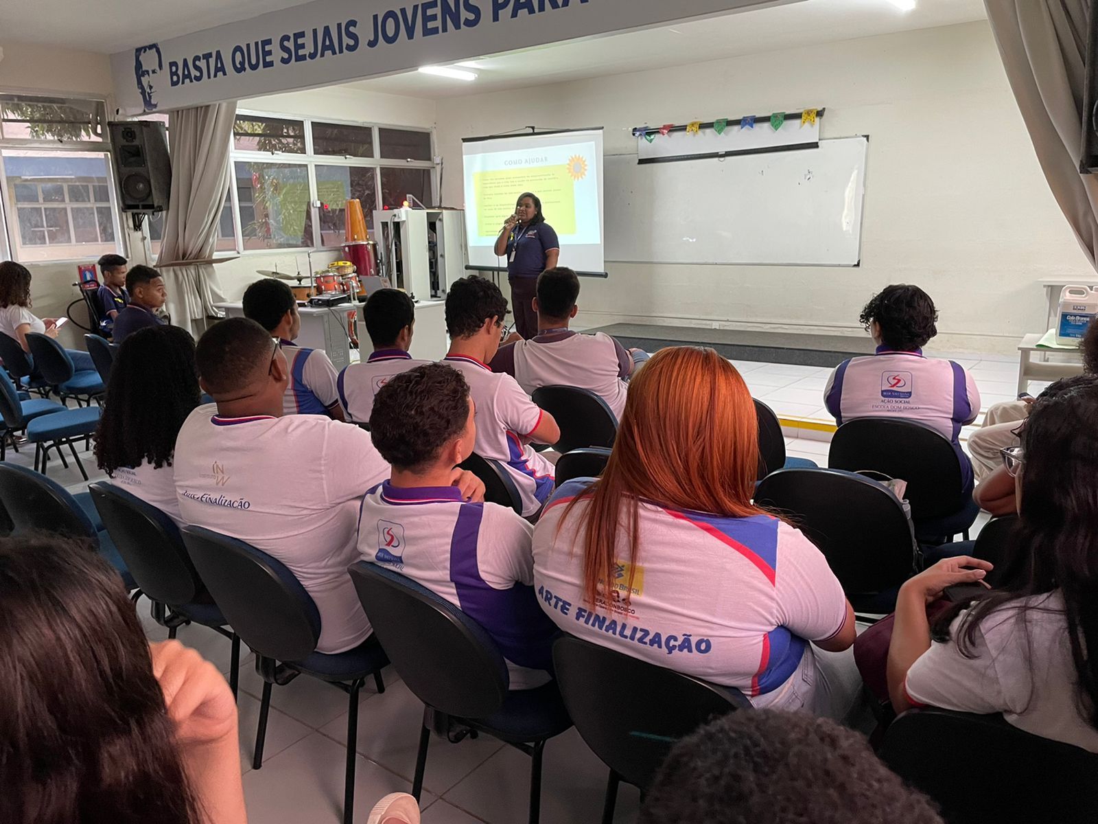 A intervenção que aconteceu nesta quinta-feira (28), envolveu uma série de atividades interativas e informativas, estimulando os jovens a parar, se observar e desenvolver hábitos saudáveis de autocuidado. Algumas das atividades destacadas incluíram: roda de conversa, modelagem de conversas de apoio, identificação de gatilhos e recursos disponíveis para buscar apoio em momentos de necessidade como o CVV – Centro de Valorização da Vida que realiza apoio emocional e prevenção do suicídio, atendendo voluntária e gratuitamente todas as pessoas que querem e precisam conversar, sob total sigilo por telefone, email e chat 24 horas todos os dias. Os jovens tiveram um espaço seguro de partilhas, aprenderam como intervir e direcionar conversas de apoio e solidariedade na ajuda com amigos, familiares e colegas e como lidar com essas situações de maneira saudável.