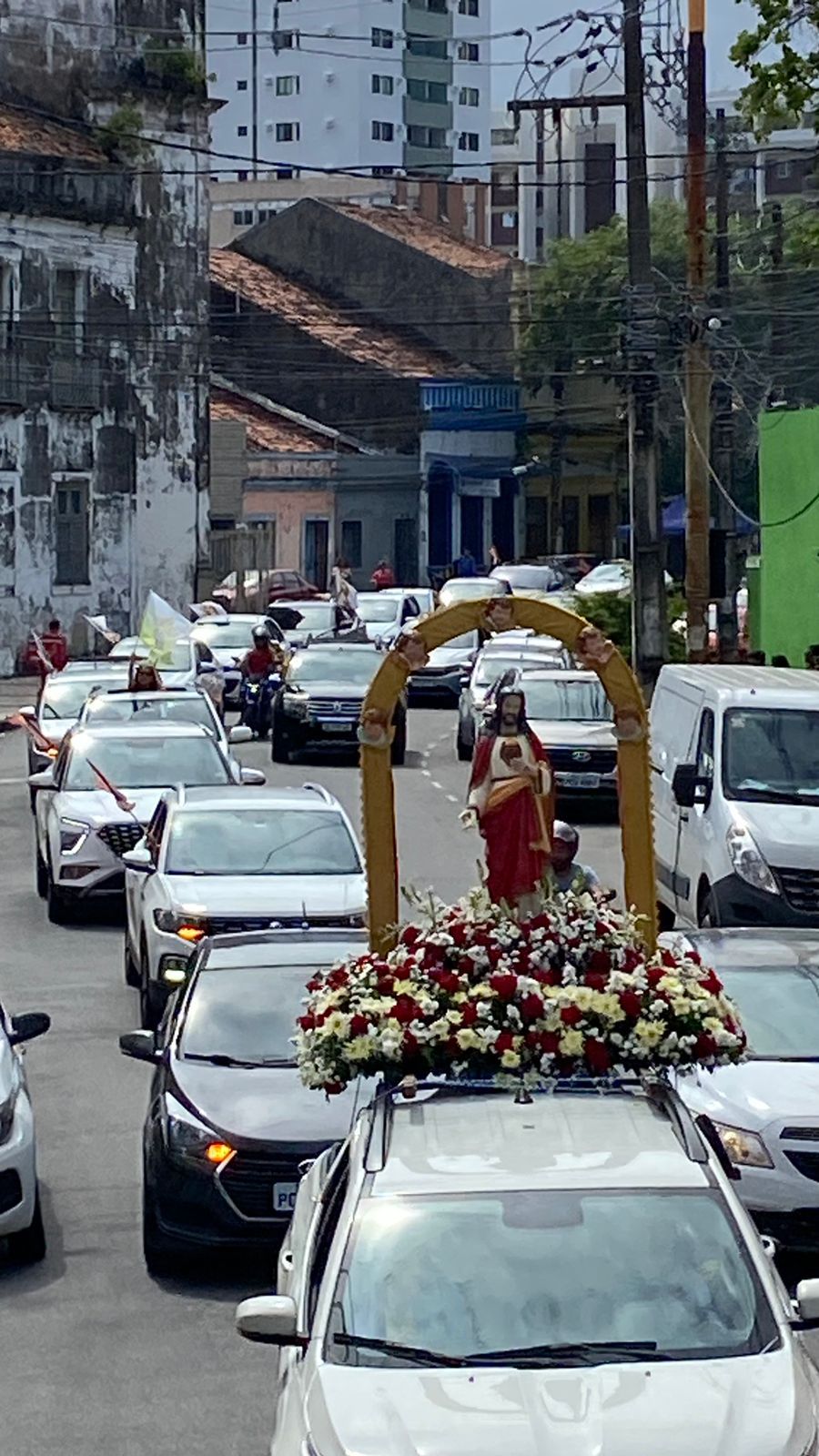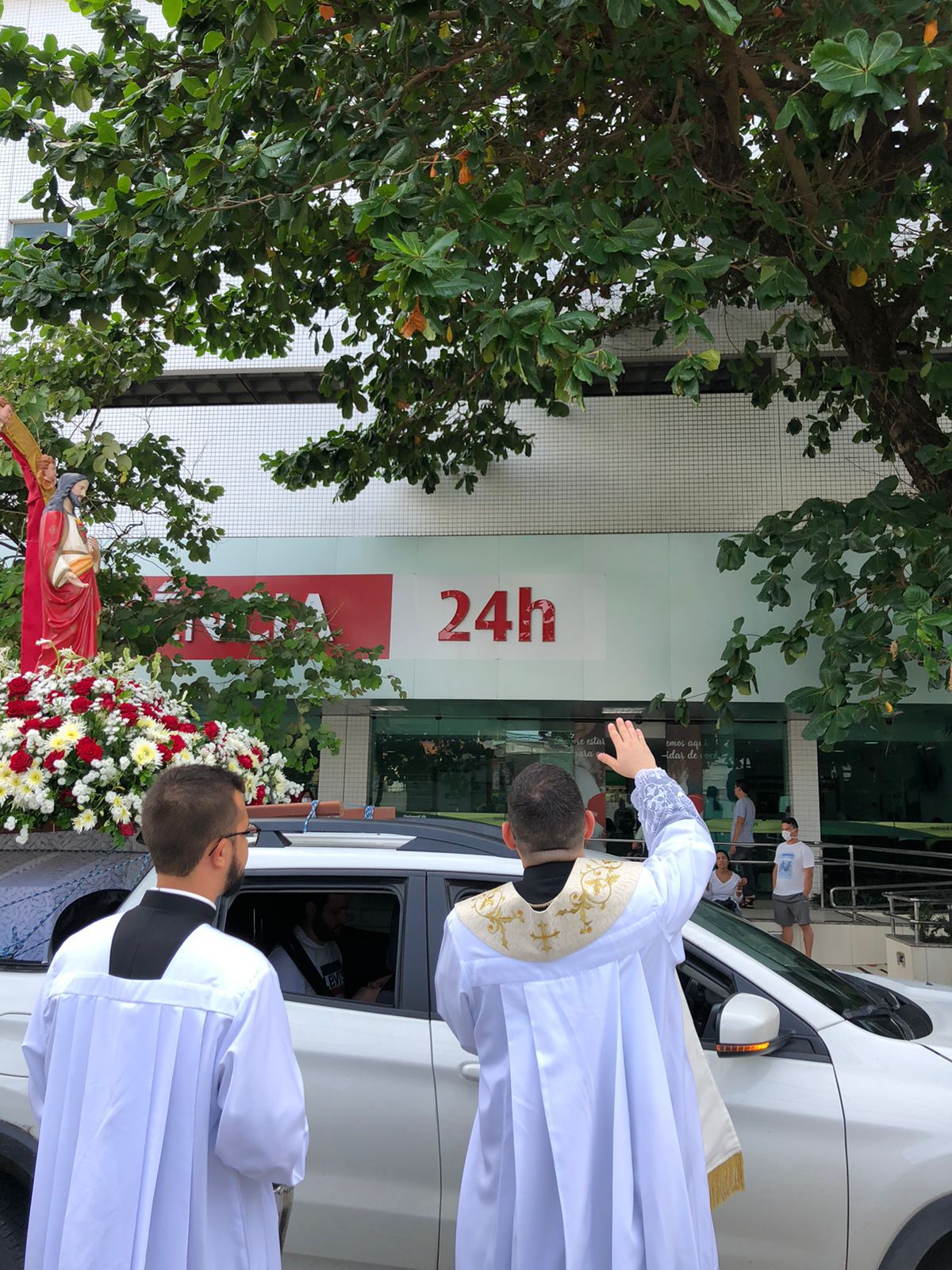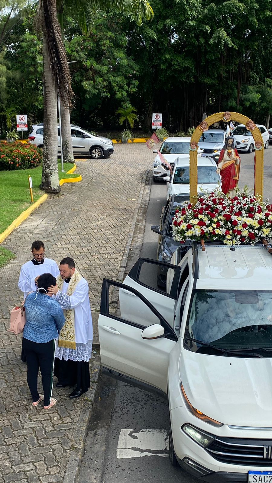 Após a celebração da Santa Missa Dominical das 10h, celebrada por Padre Délio Mota (Reitor da Basílica), houve uma carreata pelas ruas do bairro da comunidade (Boa Vista) abençoando os pacientes, familiares e profissionais da saúde com a imagem do Sagrado Coração de Jesus nos hospitais próximos à Basílica. Durante a carreata, o povo de Deus, em seus carros, em vários momentos, celebrava e glorificava o nosso Senhor através do som de seus buzinas, incentivado pelos músicos que cantavam louvores a nosso Senhor e à nossa mãe Maria. Ao final, Padre Délio abençoou os carros dos fiéis da Basílica.