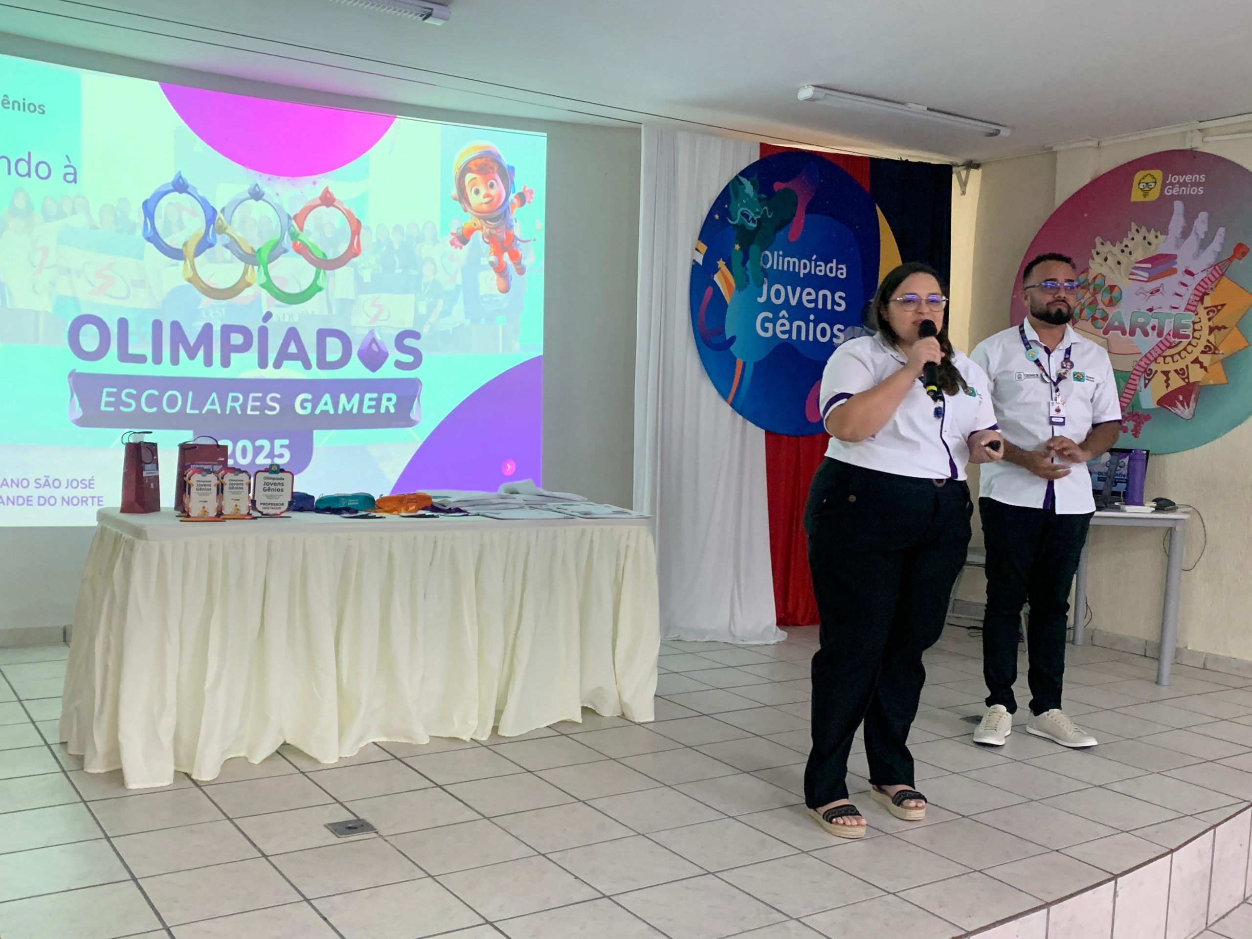 A Jovens Gênios é uma plataforma de aprendizagem adaptativa que utiliza metodologia gamificada para tornar o estudo mais dinâmico e motivador. A Olimpíada teve como objetivo estimular o engajamento docente e fortalecer o aprendizado dos estudantes nos conteúdos trabalhados em sala de aula, por meio de testes de conhecimentos gerais em disciplinas como Português, Matemática, História, Ciências, Geografia e Inglês.